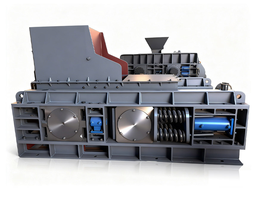 5、對輥破碎機(ji)輥體輥縫在1mm~20m間(jian)任意(yi)可調,根據(ju)破碎粒度(du)的要求調好(hao)輥縫后,破碎粒度(du)能(neng)得到可 靠控制,全部以(yi)理想粒度(du)由破碎腔下方排出。